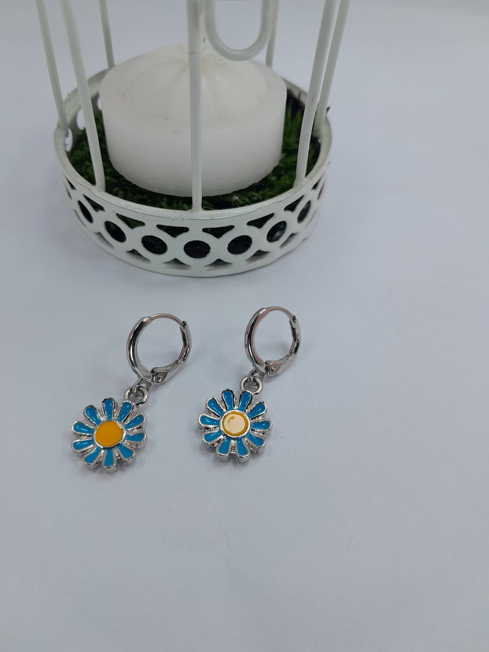 / Argolla bisagra margarita – celeste