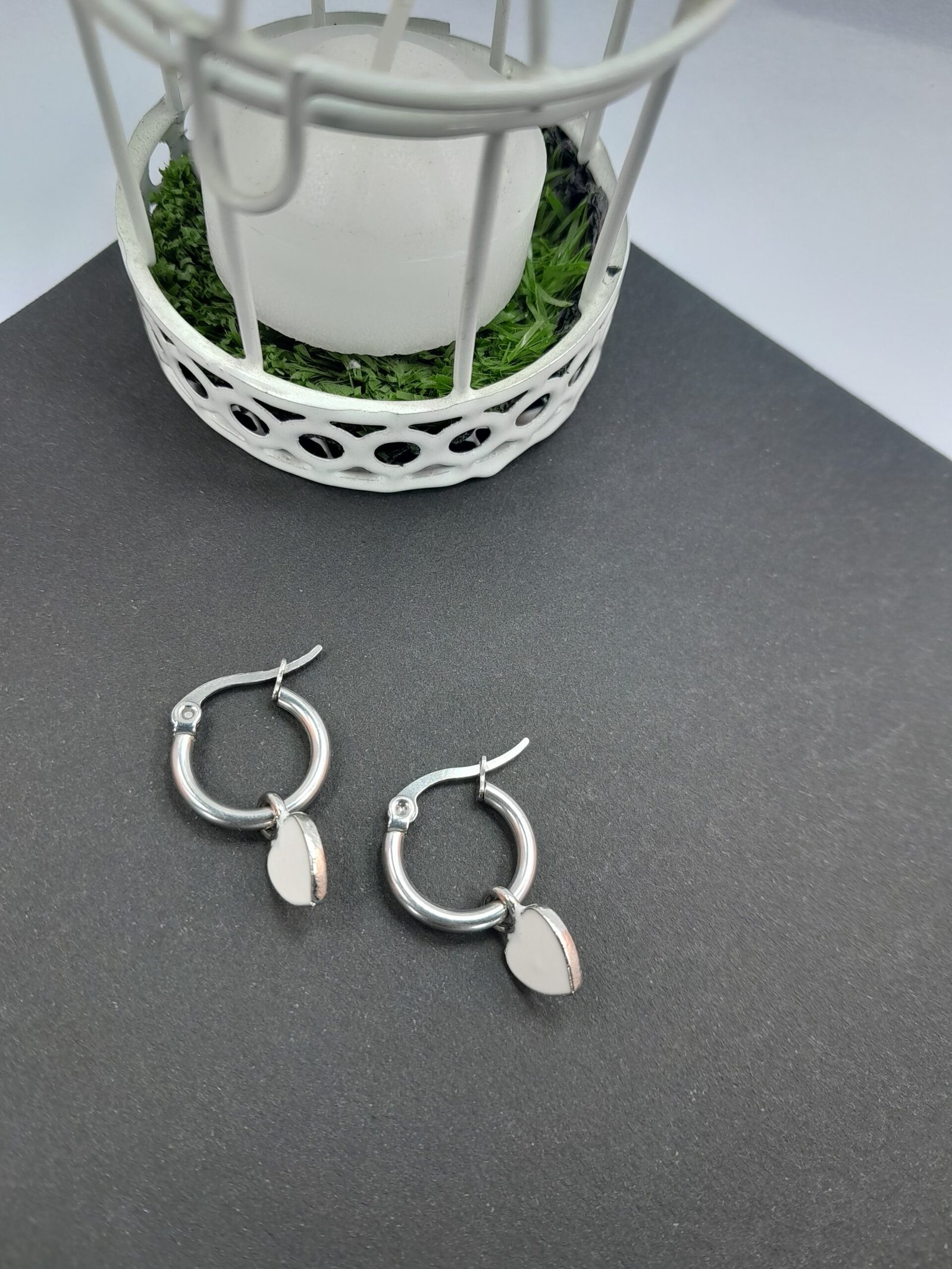 Argolla mini corazón esmaltado – blanco