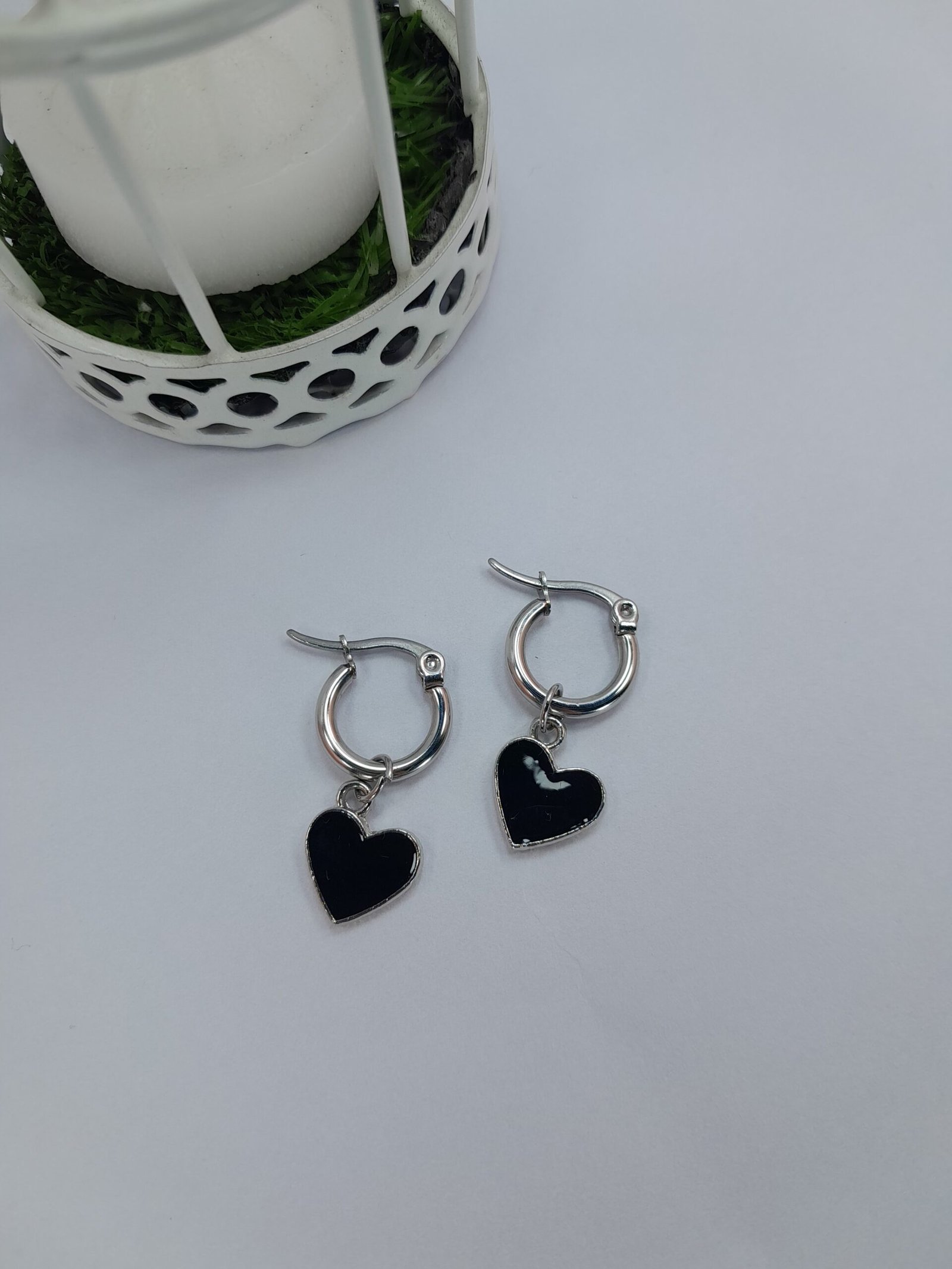 Argolla corazón esmaltado - Negro cantidad